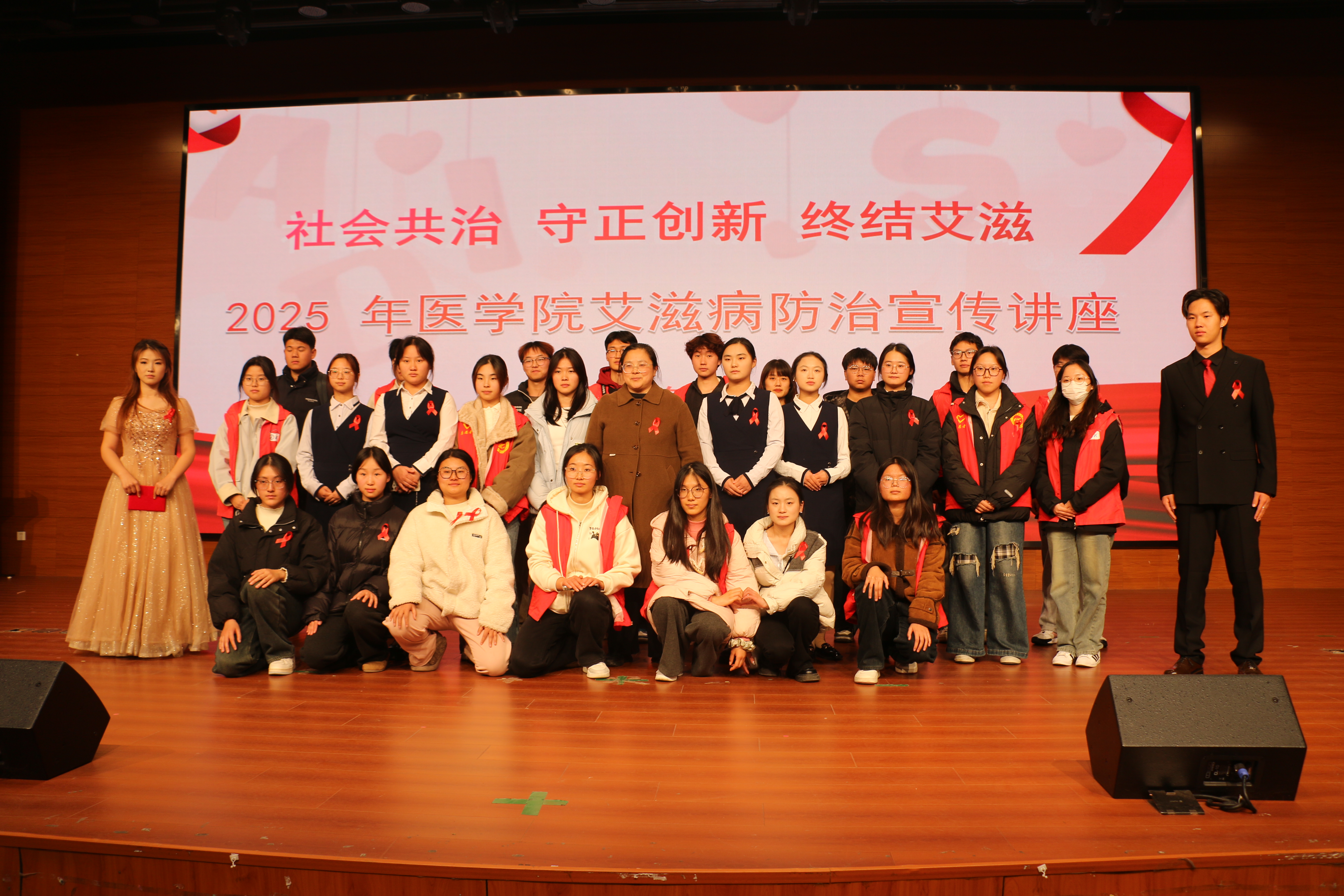 在第 38 个“世界艾滋病日”即将到来之际,为贯彻落实《中国遏制与防治艾滋病规划(2024—2030年)》要求,进一步推动艾滋病防治知识普及,11月25日,医学院成功举办主题为“凝聚社会力量,共担健康责任”的艾滋病防治宣传讲座。本次讲座紧扣“社会共治 守正创新 终结艾滋”的年度主题,通过“知识讲解+互动参与+线上延伸”的多元形式,吸引了全校师生近千人参与,营造了校园全员参与、科学防艾的浓厚氛围。