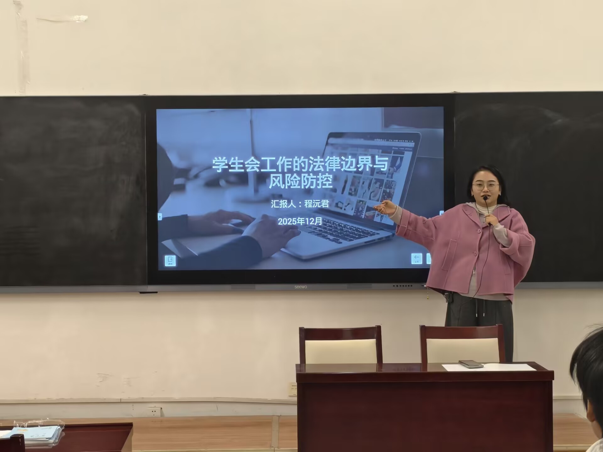 学干讲堂,明履职边界。为提升学生干部工作规范性,12月3日下午,该院法学专业辅导员程沅君在汽车轨道楼309会议室开展主题为“学生工作的法律边界与风险防控” 专题讲座,学院班长、团支书、学生会同学参训。讲座围绕学生活动中易触发的法律风险点进行解读并提供实操指南。