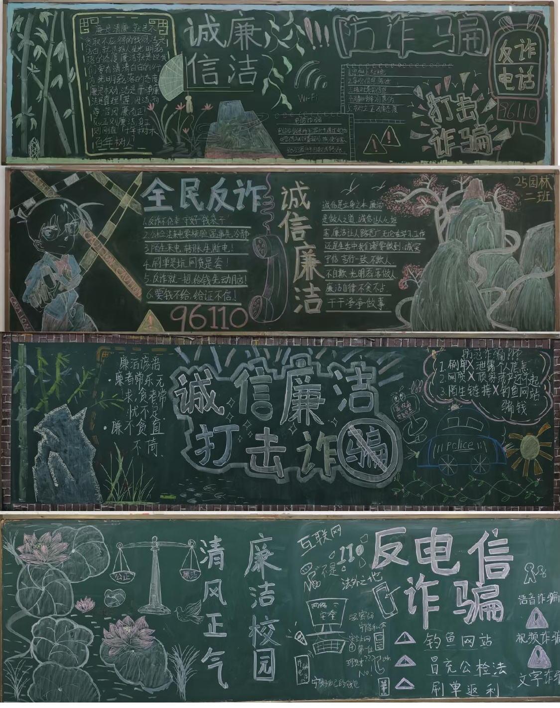 该院还组织在校班级开展诚信清廉主题黑板报评比活动,各班黑板报围绕“清廉”主题,内容丰富多彩,版面设计美观,以图绘廉、以文述廉,体现了对清廉之风的崇尚,对清廉之志的追求。