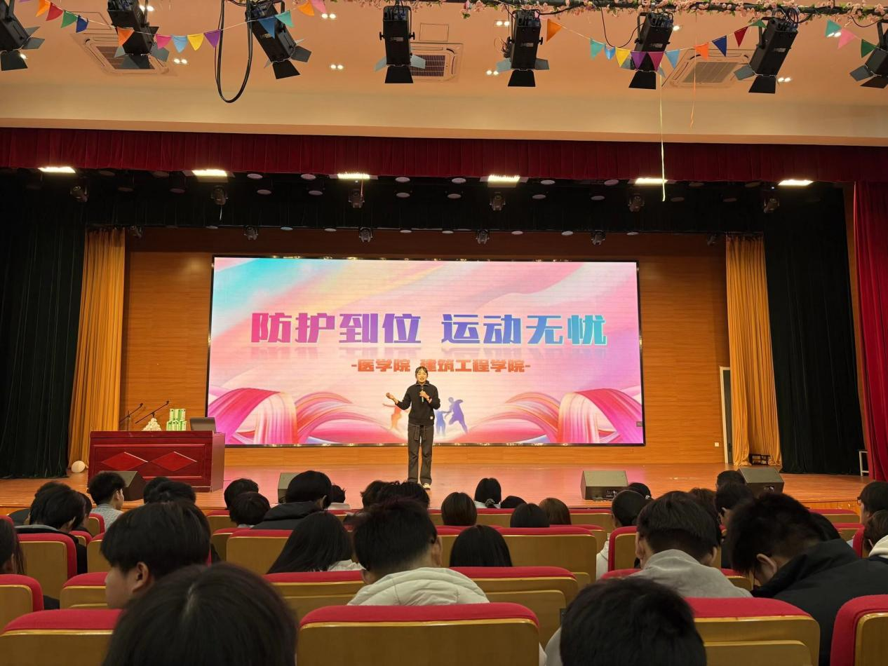 邓勋表示,让安全防护知识成为工科青年的隐形安全帽,正是本次联建的初心,安全是共通的生命底线。 主题讲授环节,康复专业骨干教师刘启以“运动损伤的可防与可控”为主线,用高校近三年案例大数据作为切入点,着重强调“充分热身、正确发力、合理恢复”是避免运动损伤的三大核心要素,并提醒同学们把工地安全习惯迁移到运动场景,实现“专业—生活”双向赋能。