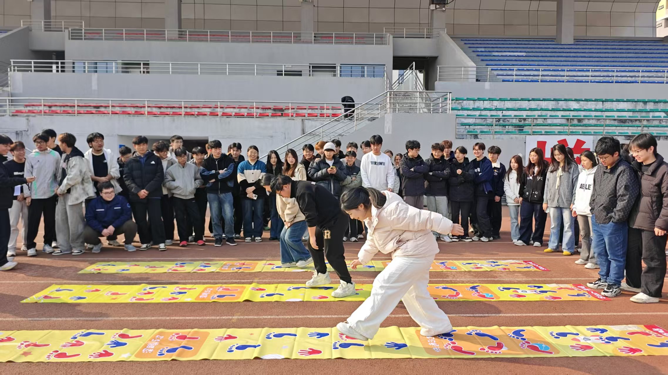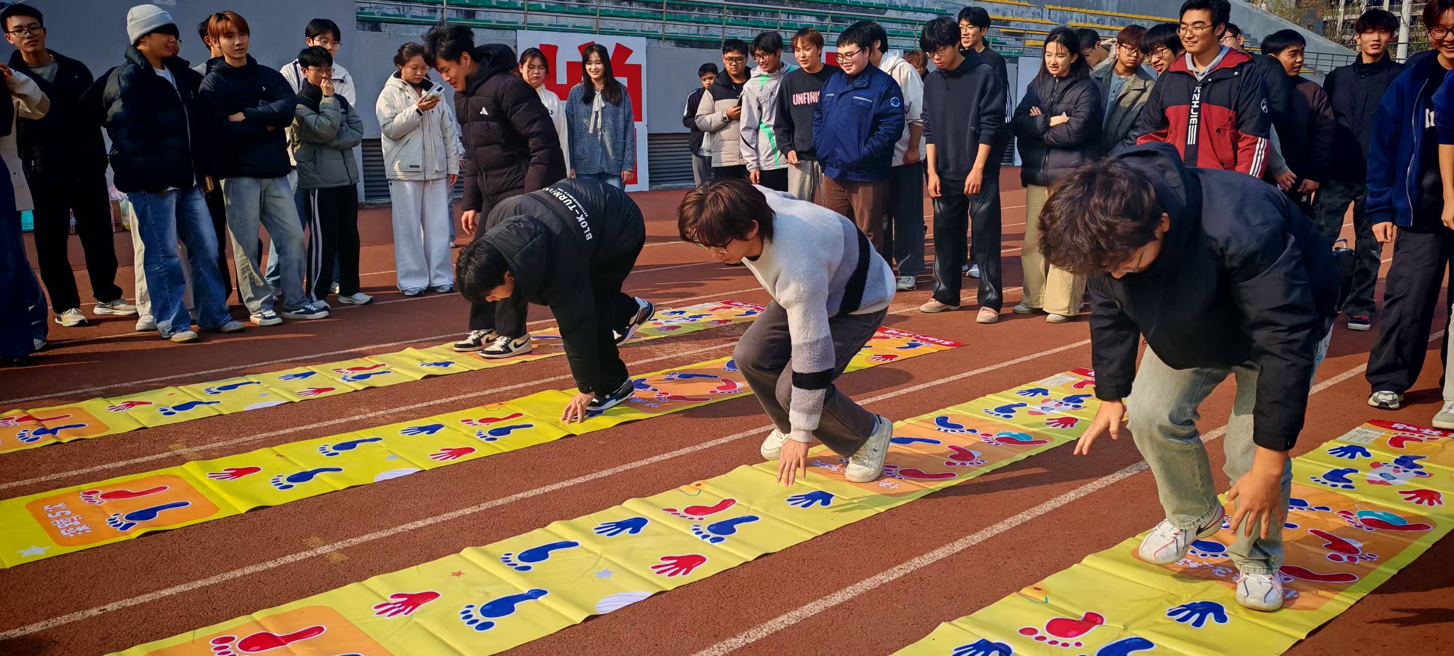 为缓解冬日寒意,增强新生班级凝聚力,促进同学间的沟通与交流。12月10日下午,汽车应用与轨道交通学院心理辅导站精心策划的冬季趣味运动会在汇心湖操场热烈开赛。本次比赛项目为趣味十足的“手脚并用”,来自合肥校区的13个新生班级,共计约150余名同学在赛场上挥洒汗水,展现青春活力。