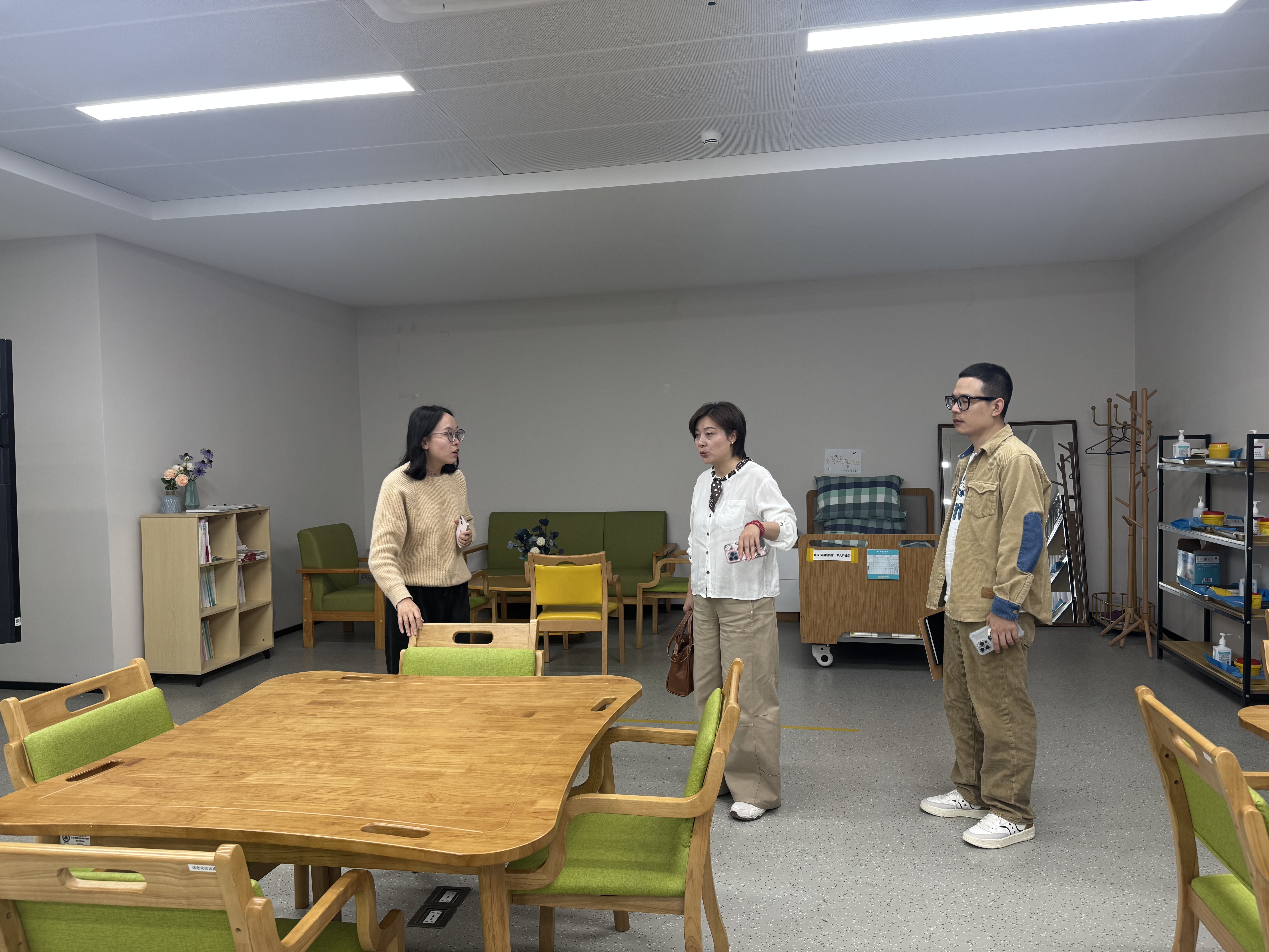 调研团队首先前往宝安区社会福利中心养老院,实地考察养老院服务运营模式、康养服务标准化建设、老年照护人才需求等情况,与养老院管理团队就养老服务行业发展趋势、校企协同培养养老照护人才路径等内容深入探讨。梁丹丹表示,将结合养老院实际需求,优化人才培养方案,强化学生实践能力培养,推动专业建设与行业需求精准对接,为养老服务行业高质量发展输送优质人才。