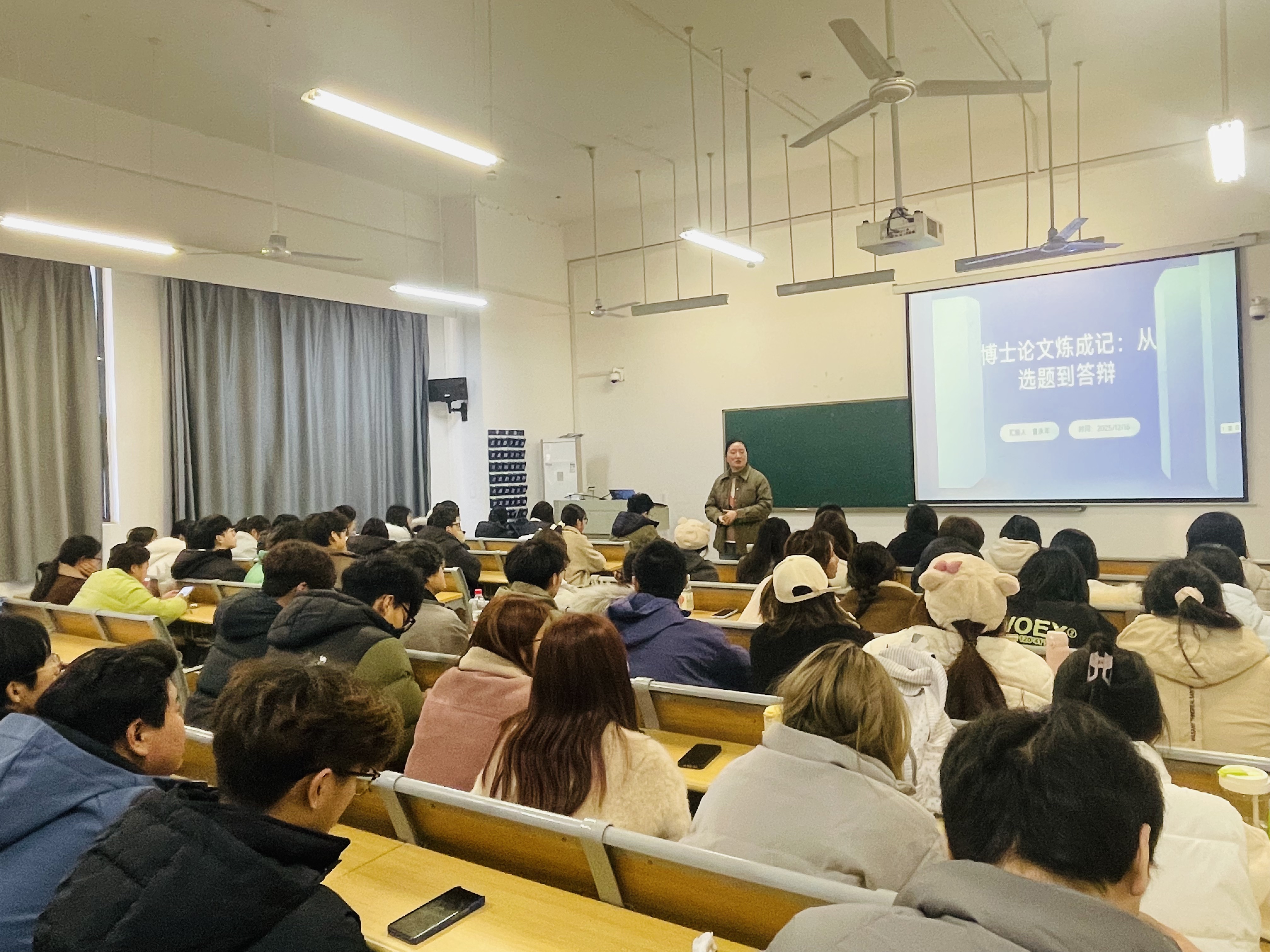 讲座伊始,曹永年老师以自己的博士论文选题为切入点,阐释了学术诚信这一选题的灵感来源。讲座内容包括:为何读博、选题诞生、文献阅读、研究设计和数据收集。在随后的讲座中,曹永年老师分享自己从高职讲台到博士之路的学习经历和数次答辩历程。案例分享部分,曹永年老师结合博士论文研究成果和发表的论文以及问卷,深入讲解大家感兴趣的学习过程中的酸甜苦辣,包括如何发现研究空白、构建理论模型、量表设计、样本选取、线上问卷。最终,她通过系统研究梳理出影响高校教育自我调节的关键因素,其中包含五个自变量和一个中介变量。通过案例分享,曹永年老师交流自己的崩溃时刻和惊喜瞬间,回答同学们关于金融专业学习中遇到的困惑,以及金融专业学习需要具备的心理建设,让同学们更直观地感受到终身学习的必要性和未来坚持金融专业学习的重要。