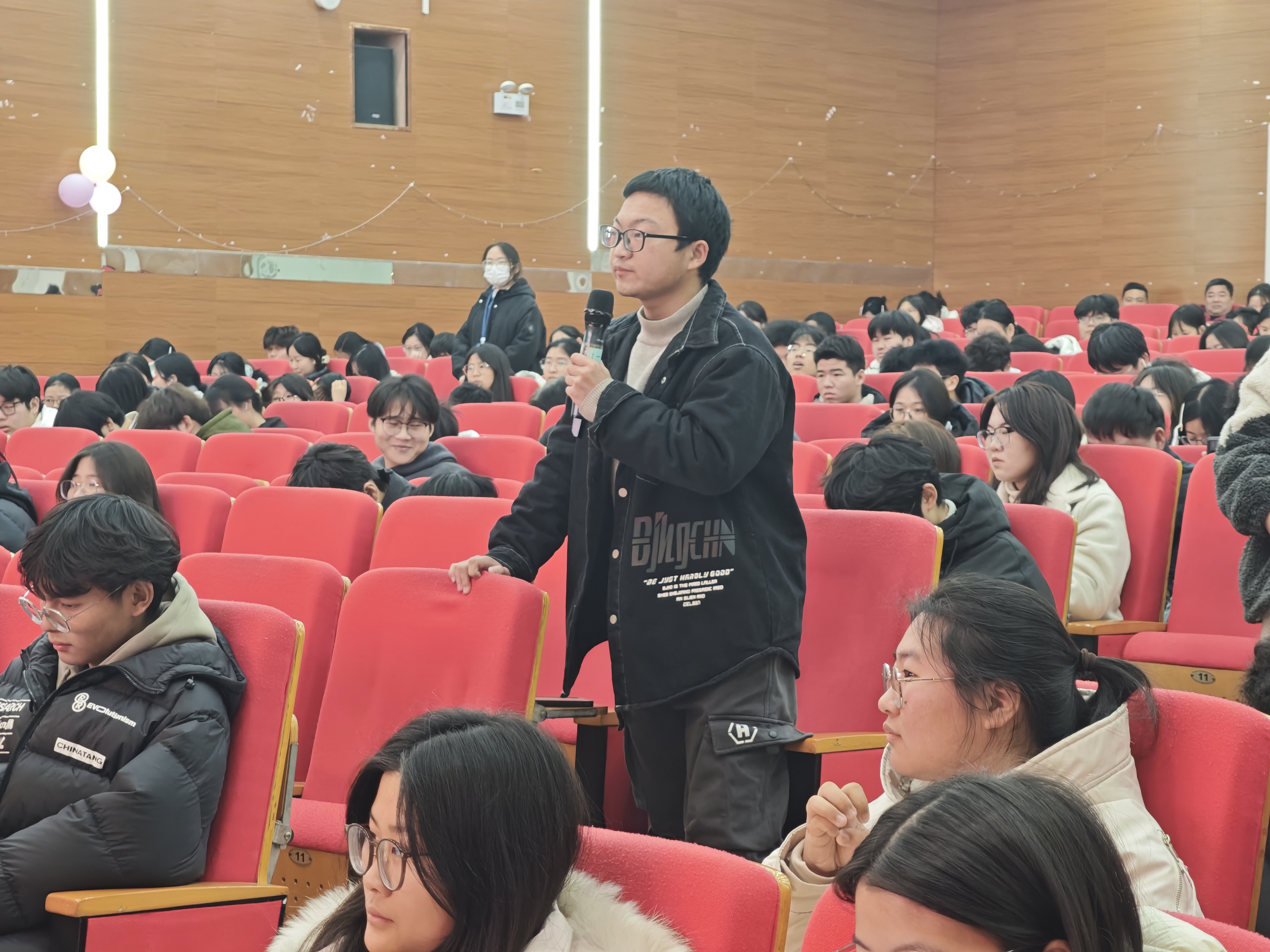 本次大会的核心环节互动交流阶段气氛热烈。学校物业管理、餐饮服务、维修保障等多个服务部门的负责人及工作人员齐聚现场,与学生们围坐一堂,进行“零距离”沟通。同学们踊跃发言,就热水供应、食堂菜品、设备报修效率、公共区域卫生、运动设施维护等具体问题提出了意见和建议。面对同学们的提问,各部门负责人耐心倾听、认真记录,并逐一给予了坦诚、细致的回应。林胜不仅能现场介绍了同学们迫切关心的更换宿舍床铺、安装外卖柜等工作进展情况,更敦促各服务部门,对于能立即解决的问题,要现场给出解决时限和方案;对于需要协调或持续改进的复杂问题,也需详细说明现状、解释原因,并承诺纳入工作计划深入研究落实。整场互动坦诚而富有成效,现场不时响起阵阵掌声。