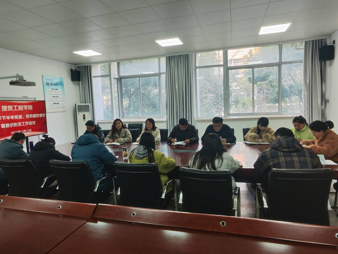 为深入贯彻落实学校党委工作部署,系统总结建筑工程学院年度党建和党风廉政建设工作,进一步压实责任、明确方向,该院于12月17日下午在建工楼213会议室,组织召开了2025年下半年党建暨党风廉政建设工作专题会议。建筑工程学院党总支班子成员、各党支部书记及委员参加会议。会议由建筑工程学院党总支副书记施芳芳主持。