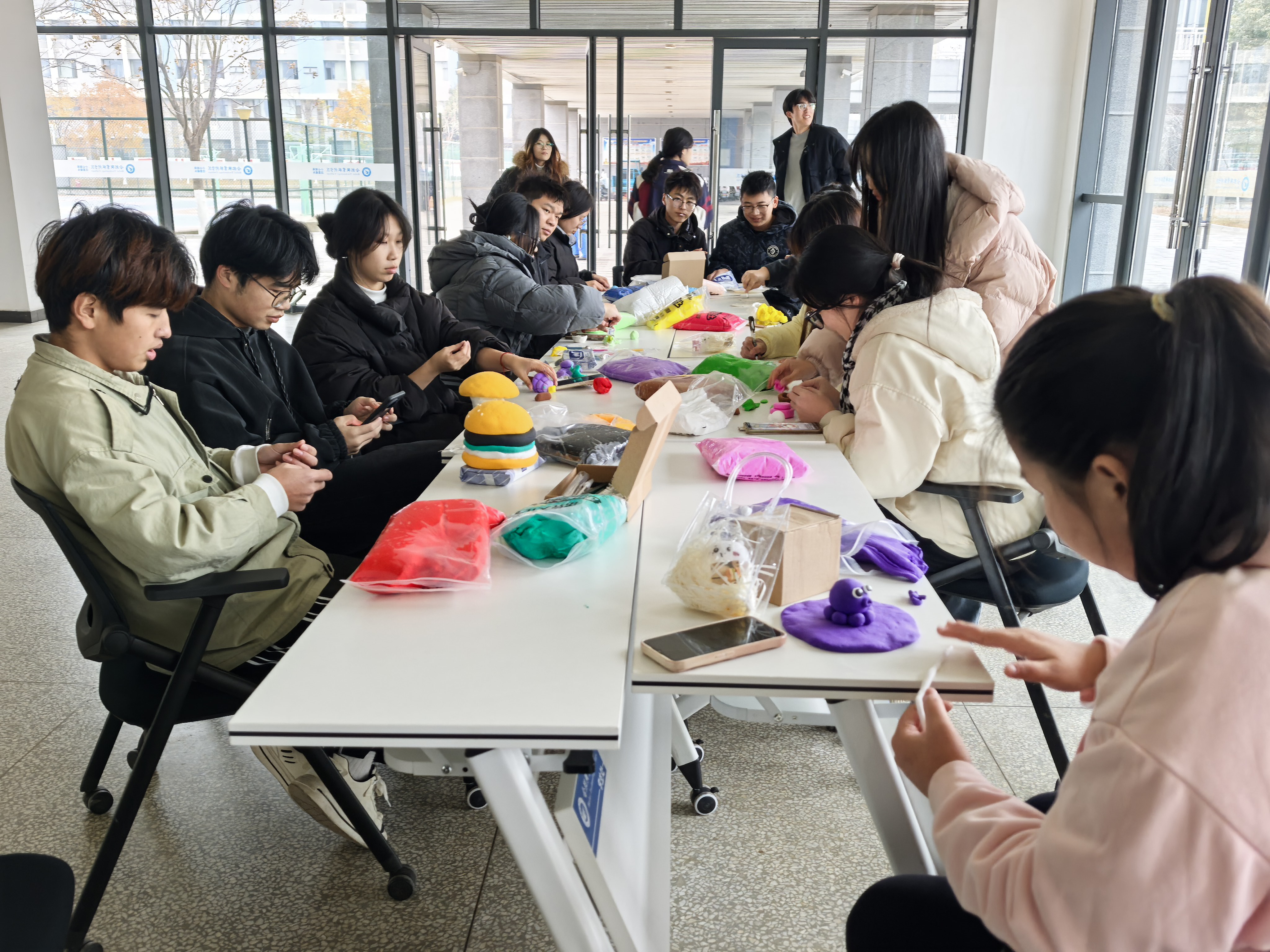 黏土巧手,创意微观。12月24日下午,北教小广场变身“冬日微景观DIY工坊”。同学们发挥想象力,用各色黏土在纸盘上塑造雪人、松树、冬景画卷,或制作石塑黏土项链,打磨、上色、穿绳,一步步完成独一无二的手工作品。现场展示区琳琅满目,创作交流氛围轻松愉快。方寸之间,尽显匠心,同学们在手工创作中感受冬日静谧之美。
