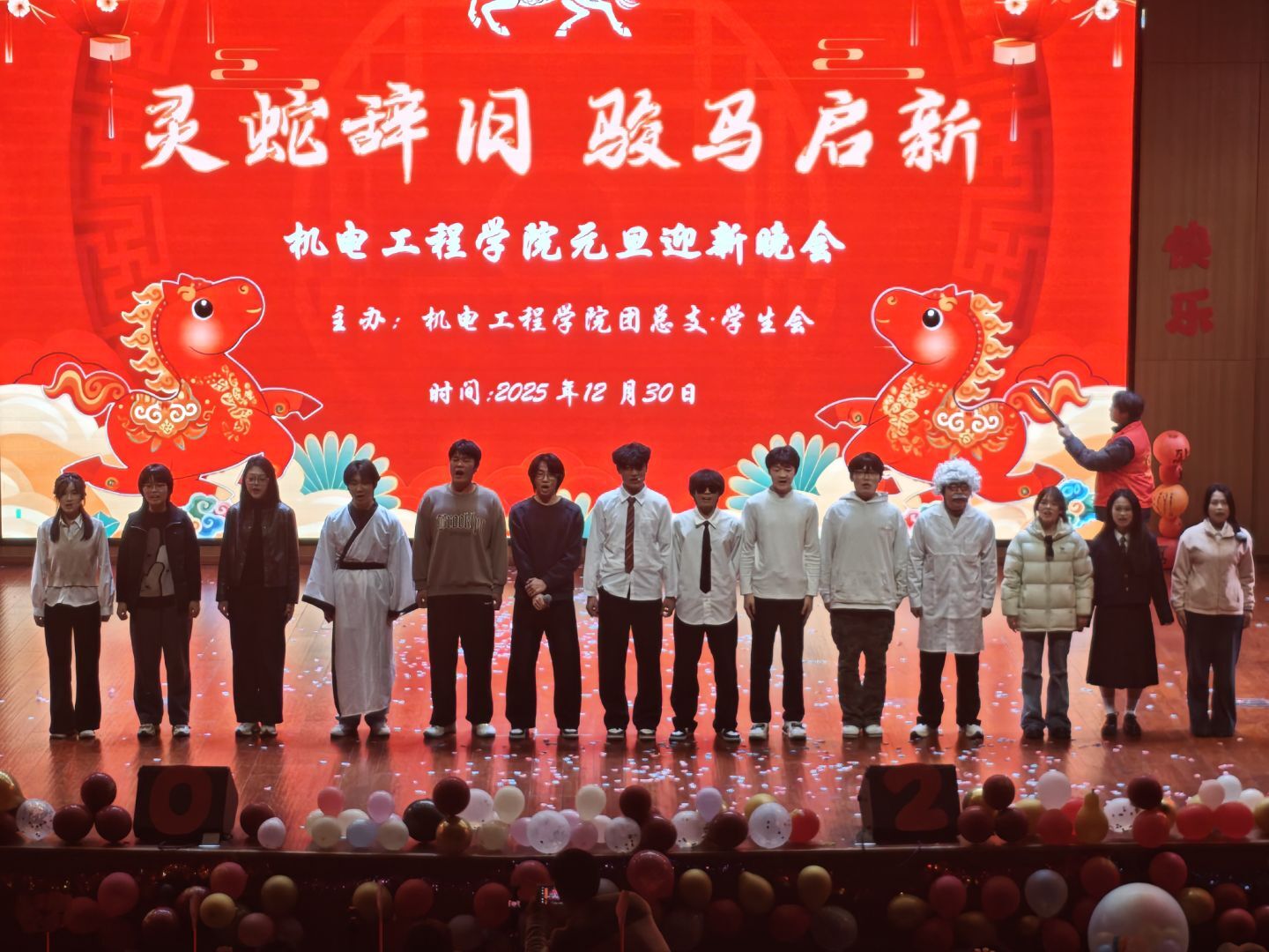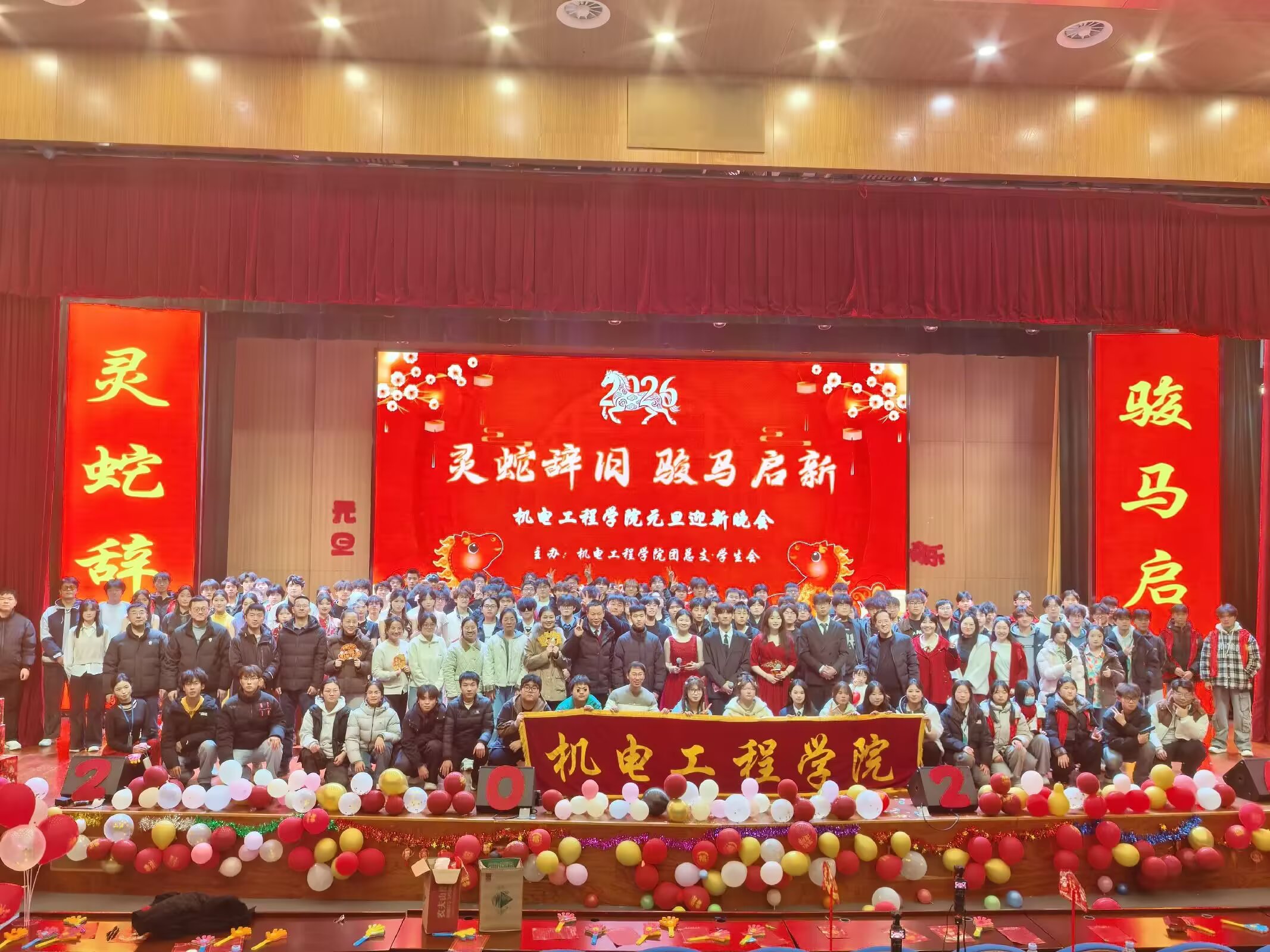 岁序更替,华章日新。为营造温馨和谐、喜乐祥和的新年氛围,彰显机电工程学院学子的青春活力与精神风貌,12月30日晚,该院在汇心湖校区大学生活动中心二楼报告厅成功举办2026年元旦晚会。师生们齐聚一堂,共赴新岁之约。