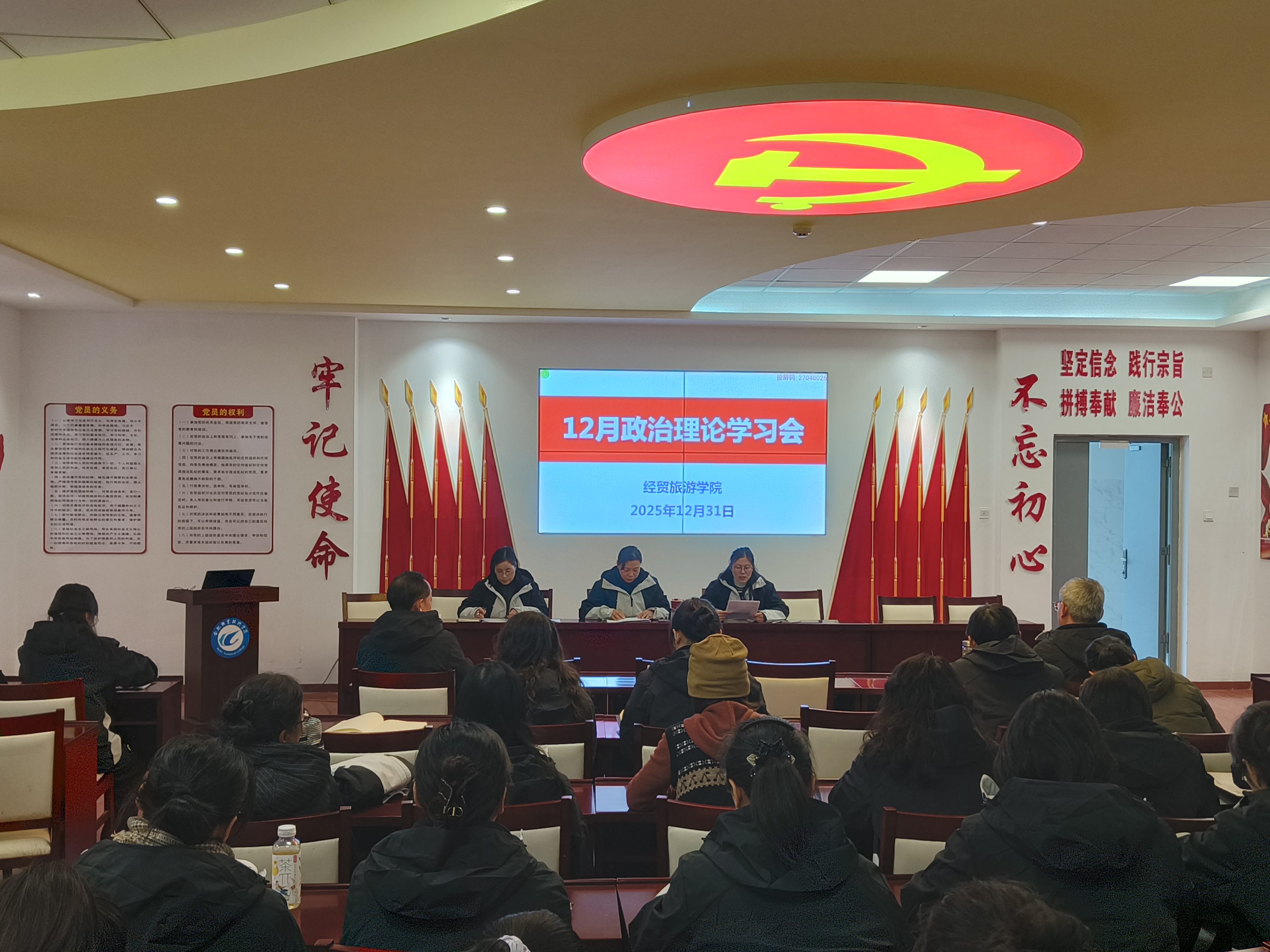 12月31日下午,经贸旅游学院在党性体验馆组织召开12月份政治理论学习会暨全体教职工大会,系统学习近期重要会议精神和决策部署,持续推进党的创新理论入脑入心、指导实践。会议由该院副院长付晓兰主持,该院全体教职工参会。