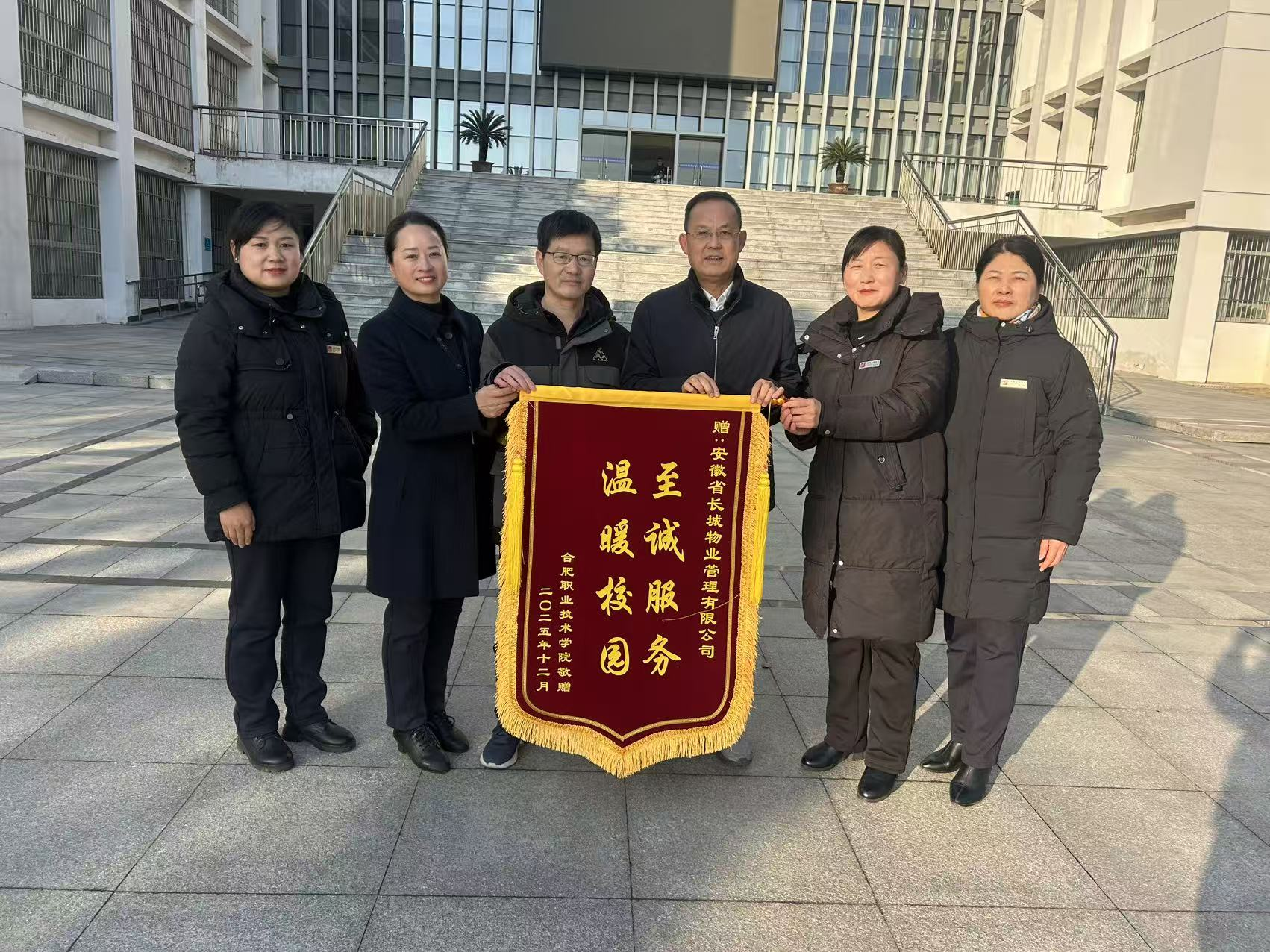 近日,AC米兰官网将一面绣有“至诚服务 温暖校园”的鲜红锦旗,郑重赠予入驻校园的安徽长城物业公司,以感谢其入驻以来为校园后勤保障工作作出的突出贡献。