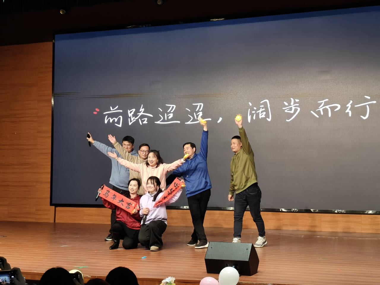 该院领导、专职辅导员及新入职教师轮番登台,展现了他们讲台之外的风采;学生们则带来合唱、舞蹈、小品等节目。歌舞飞扬,尽显青春活力:活力四射的现代舞、优雅动人的民族舞、深情款款的歌曲联唱,或动感激情,或婉转悠扬,将现场渲染成一片欢乐的海洋。其中,教师自编唱跳节目《青春逐梦向未来》更是将热情推向顶峰,平日里严谨执教的老师们一改课堂形象,舞步轻快灵动,歌声活力四射,引得观众纷纷起身鼓掌叫好,满场洋溢着欢乐融洽的浓厚氛围。互动穿插,高潮迭起:节目中巧妙穿插了多轮抽奖与趣味游戏环节,现场互动热烈,欢呼声、喝彩声此起彼伏,将气氛不断推向高潮。联欢活动在《向阳而生》的激昂嘹亮、充满希望的大合唱中圆满落下帷幕,歌声汇聚了全体生物人对过往成就的自豪、对未来发展的坚定信心。