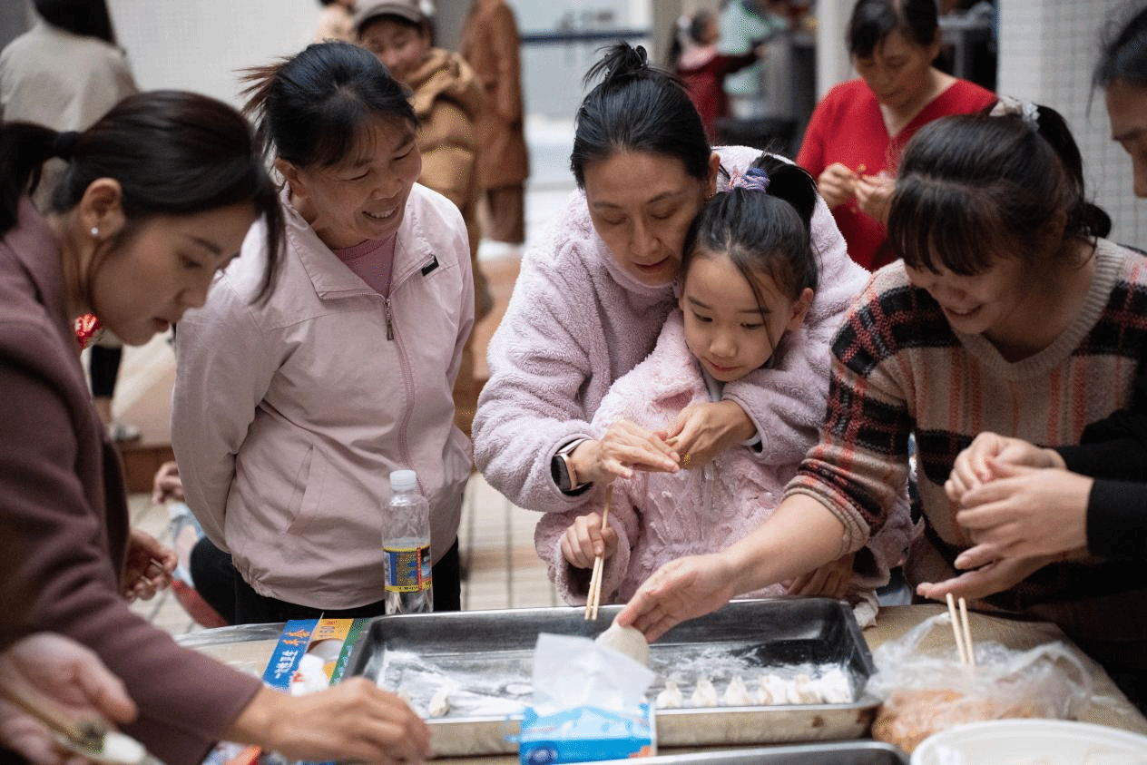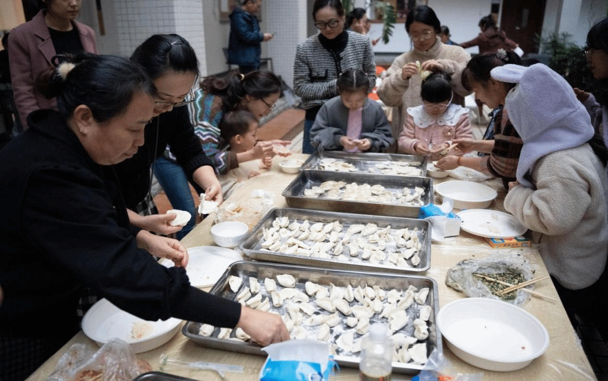 活动最后的环节是“集体包饺子”,大家围坐在桌前,包馅、捏边……经过一道道步骤,最终包出一盘盘好看又好吃的饺子,让大家感受到了传统年味的魅力。
