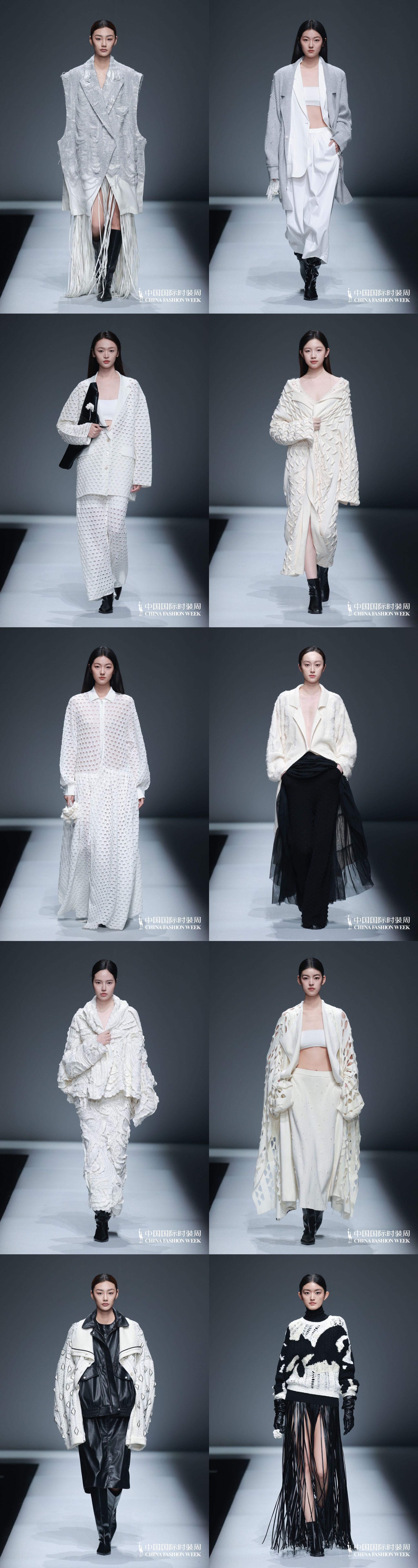 本次发布的 2025秋冬系列《情书》以羊绒纱线和光感纱线为主要材质,结合传统手工编织技艺与现代计算机编程技术,融入花朵、鸽子等象征元素,呈现出富有层次感和情感张力的针织作品。该系列不仅在视觉上带来柔美与力量的交融,更在设计理念上表达了勇于接纳自身变化,深爱自己的价值主张。值得一提的是,秀场上模特们所穿着的服装,可以在音乐流淌中缓缓变色——或紫红、或淡黄、或青灰,甚至呈现出花朵和鸽子的幻变图案,这一创新性的动态色彩变化,让服装成为记录人生变迁的媒介,呼应了品牌对于自我接纳与生命流动的哲思。这一大胆创新,赢得了在场时尚界人士的高度评价。