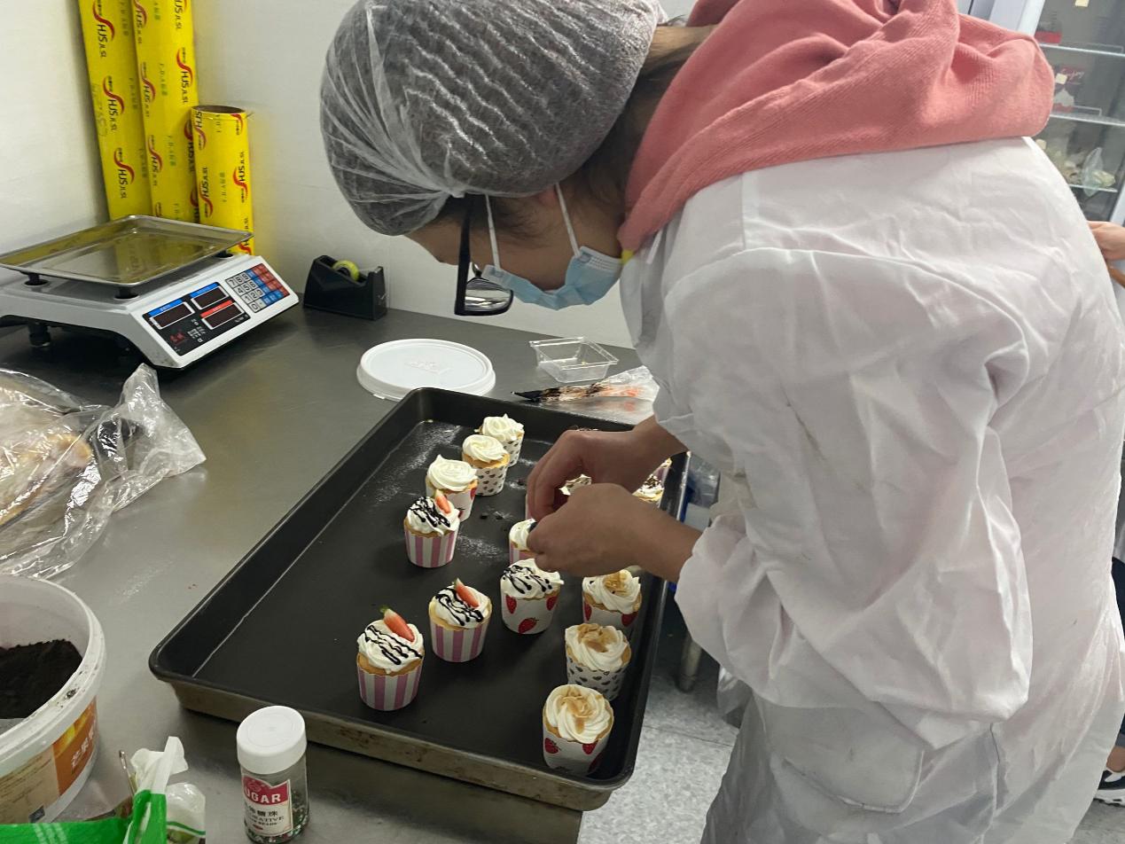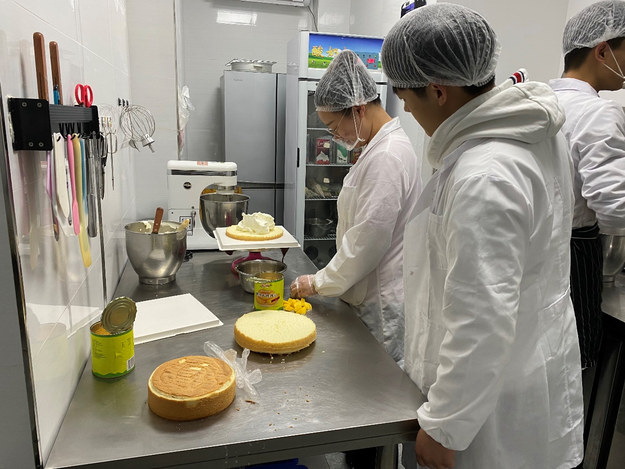 为宣传展示职业教育助力新冠肺炎疫情防控、支持复工复产、促进就业创业等方面的成效、大力弘扬劳动光荣、技能宝贵、创造伟大的时代风尚,进一步营造社会关心支持职业教育的良好氛围。AC米兰官网食品专业积配合校、院两级的号召,于11月10日,在校级创业基地——魔幻烘焙坊开展技能培训。下午三点,三十多位热爱烘焙的同学在食品教研室全体老师的带领下来到了魔幻烘焙坊参观和学习,动手体验烘焙制品的制作。