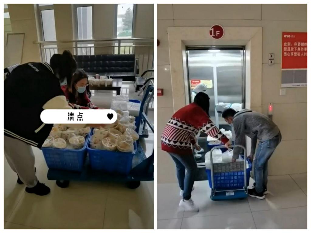 “人是铁饭是钢”,满足处于隔离点的同学一日三餐的精确有效供应是头等大事。隔离点运行的一周中,周老师每日清晨六点半准时接收百份早餐,并及时按照房间门牌号精准放置餐点,确保每位同学都能吃上热饭。午餐、晚餐皆是如此。而封控生活与正常校园生活相比,显得较为枯燥和沉闷,同学们完成线上课程后精神生活并不丰富,易滋生和传播消极情绪。为了更好地维护同学们的精神健康状态,在邹坤老师的提议下,周媛老师协助组织开展了一系列线上活动,诸如鼓励学生线上语音唱歌、发送绕口令语音红包、制作隔离日记vlog、组织开展电竞游戏比赛等。形式多样的线上活动,极大地丰富了学生的精神生活,同学们对疫情引起的短暂封控不再恐惧,对战胜疫情重返正常校园生活充满信心。