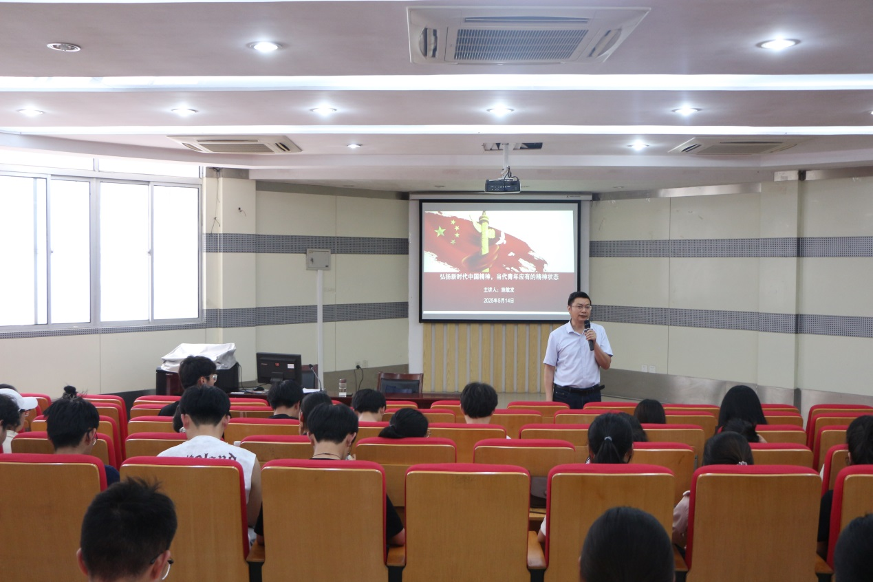 5月14日下午,为大力弘扬劳模精神、劳动精神、工匠精神,基础教育学院副院长(主持工作)施敏发在鼓山校区图书馆一楼第一报告厅,结合职业教育传承弘扬中国精神,做了题为“弘扬新时代中国精神,当代青年应有的精神状态”的学术讲座。青年马克思主义学会(鼓山校区)全体成员及部分学生代表共百余人现场聆听。