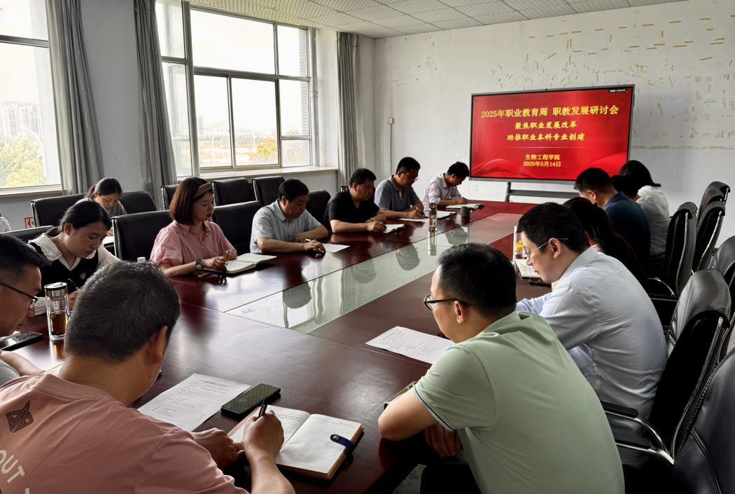 为深入宣传贯彻全国、全省职业教育周有关精神,5月14日下午,AC米兰中文官方网站在生化楼A311党员活动室举办了职教发展研讨会。会议由副院长方丽波主持,学院党政班子成员参加会议,汇聚了副高以上职称教师、博士、教研室主任以及专业负责人等,共同围绕如何聚焦职业教育发展改革与助推职业本科专业创建展开深入研讨。
