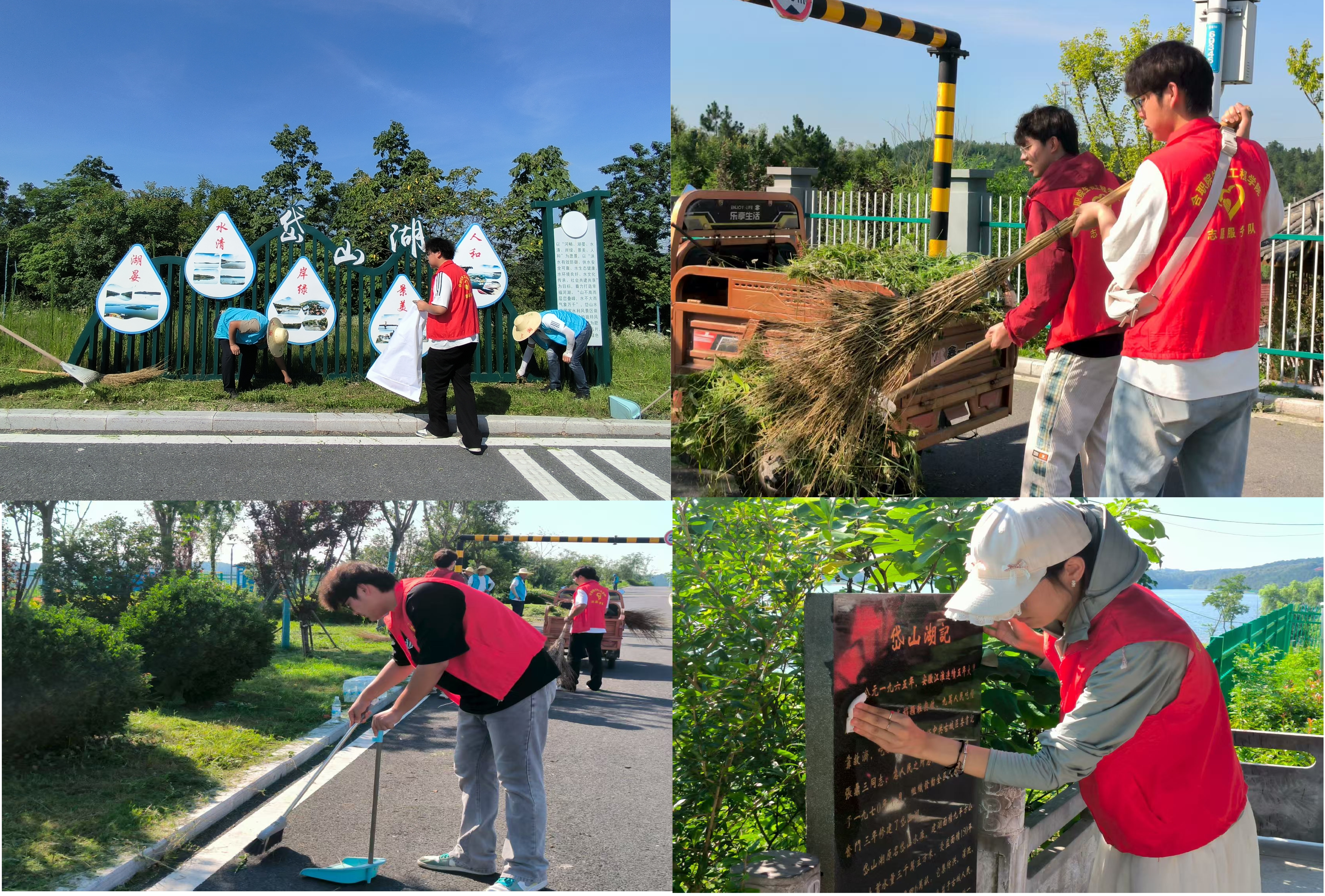 7月2日,实践团队走进岱山湖水库,开启了一场沉浸式水利工程环境保护之旅。实践队从实地考察水质入手,开启此次意义非凡的实践之旅。队员们严格依照规范流程完成湖水采样工作,并对水样进行了现场检验,在许睿老师的指导下,队员们有序开展了水体有机污染(COD)、酸碱度(pH)和溶解氧(DO)检验操作。通过理论与实操的结合,队员们掌握了水质监测核心技能,深刻认识到科学数据对水环境精准治理的关键作用。实践团还有幸采访了一位守护这颗蓝宝石脉搏跳动,坚守守库岗位20余年的普通水务工作者顾家桂。他自2000年参加工作来到岱山湖水库后,便迅速融入这片土地。自清晨薄雾到日暮黄昏,坝顶2.24公里、坝底3.4公里的路途上,总能看到顾家桂和同事们的身影,一天两次的巡护,是雷打不动的“功课”。他用坚守诠释着“螺丝钉”精神。活动最后,队员们沿着水库岸边及上游的田间沟渠、道路两侧,展开了地毯式的垃圾清理工作。他们不惧酷暑,仔细搜寻散落在草丛、石缝、水边的塑料袋、饮料瓶、泡沫板等各类生活垃圾和农业废弃物。队员们红色的身影成为绿水青山间一道亮丽的风景线,他们用实际行动守护着当地重要的水源地,为保障水质安全和生态环境改善贡献了青春力量。