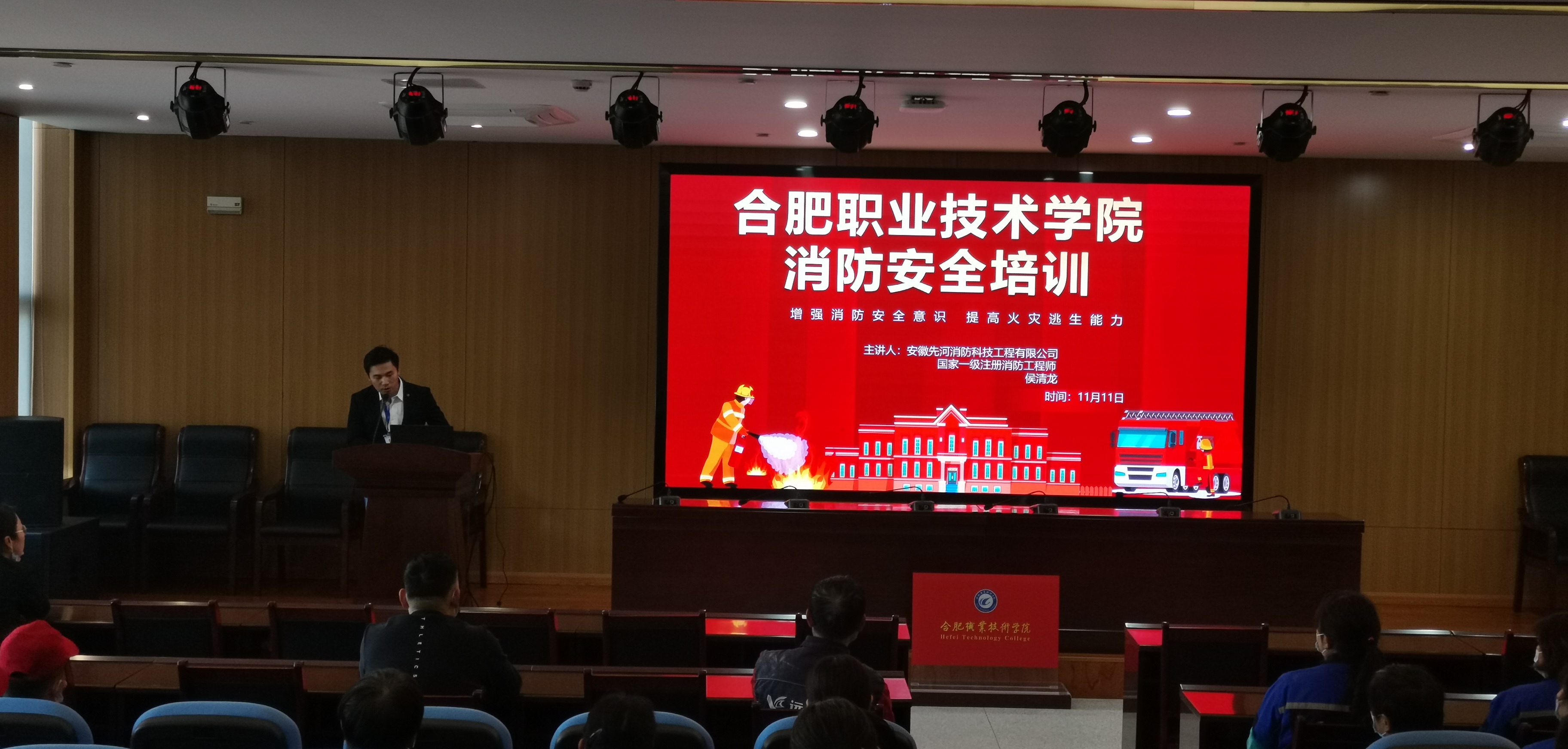 为进一步加强学校消防安全工作,增强服务人员的消防安全意识,11月11日下午,学校邀请消防维保单位安徽先河消防科技工程有限公司消防工程师侯清龙来校为服务工作人员开展消防安全培训。汇心湖校区安保、物业、食堂、超市等外包服务人员100余人参加培训。