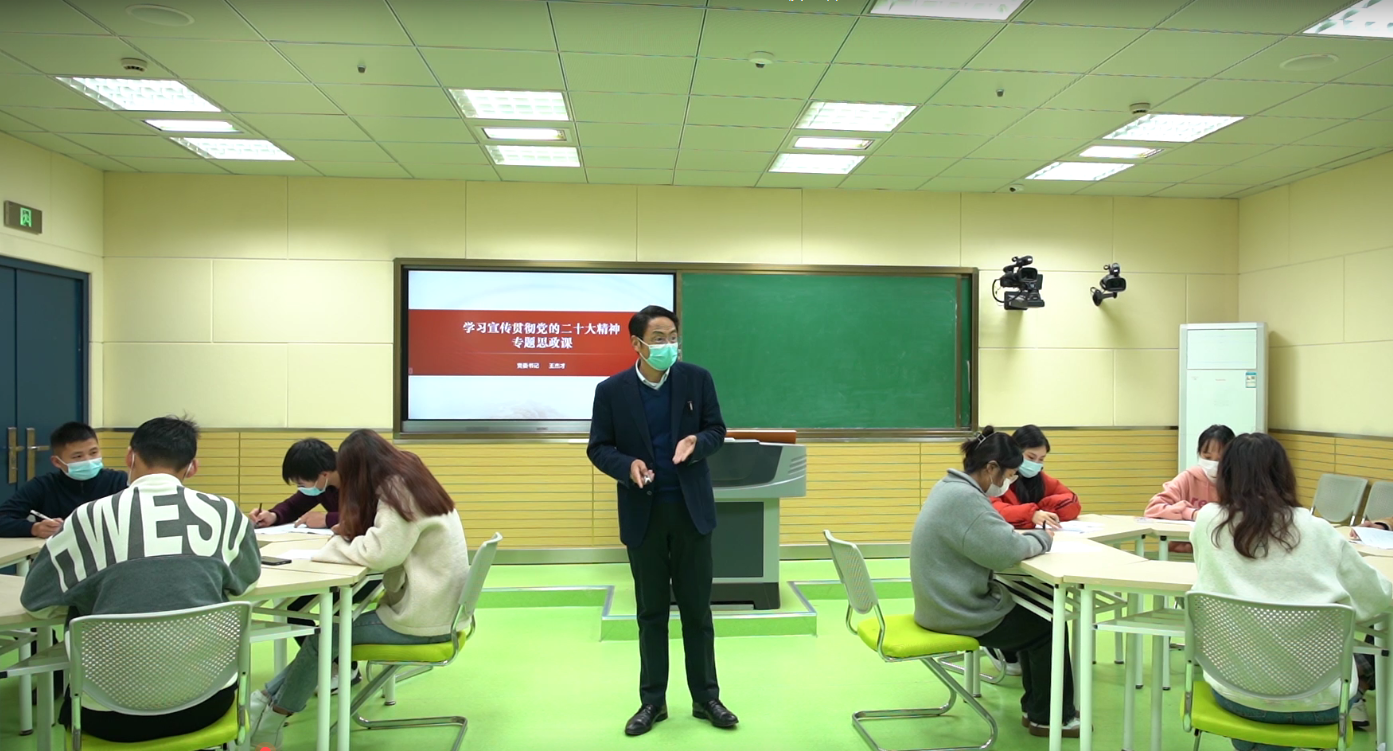 为深入学习宣传党的二十大精神,深入开展“职教师生心向党”活动,把青年大学生的思想和行动统一到党的二十大精神上来,11月15日上午,学校党委书记王杰才深入课堂以“学习宣传党的二十大精神”为主题为马克思主义学院的师生代表上了一堂内涵丰富、鲜活生动的专题思政课。