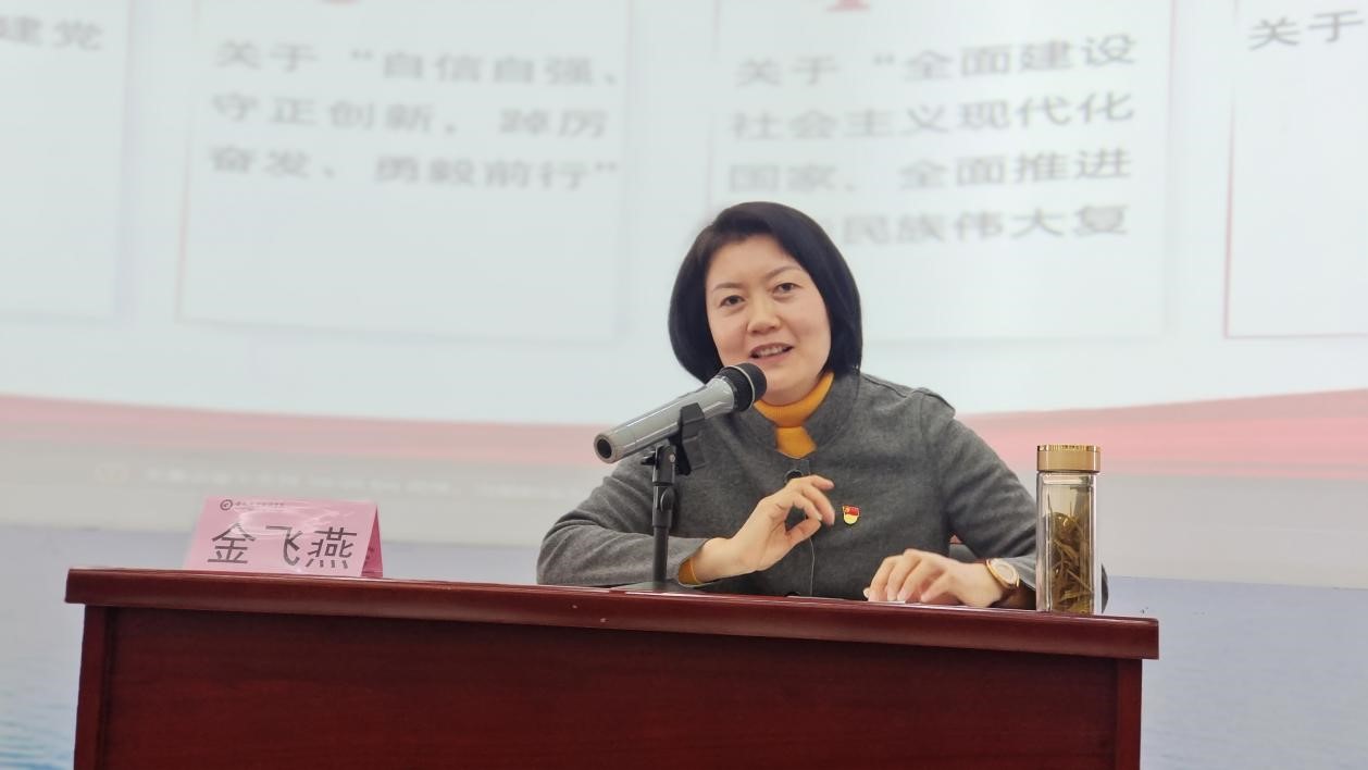 开班典礼结束后,金飞燕为全体学员上了第一堂党课,从会议概况、主要内容、报告主题等方面为同学们全面解读了党的二十大报告,强调要通过学习深刻领悟“两个确立”的决定性意义,牢记和践行“三个务必”,通过系列微视频带领同学们回顾了青年在各个历史时期的奉献与担当,号召全体同学要以习近平总书记对青年的寄语为行动指南,牢记青春使命,担当时代重任,立志做有理想、敢担当、能吃苦、肯奋斗的新时代好青年。