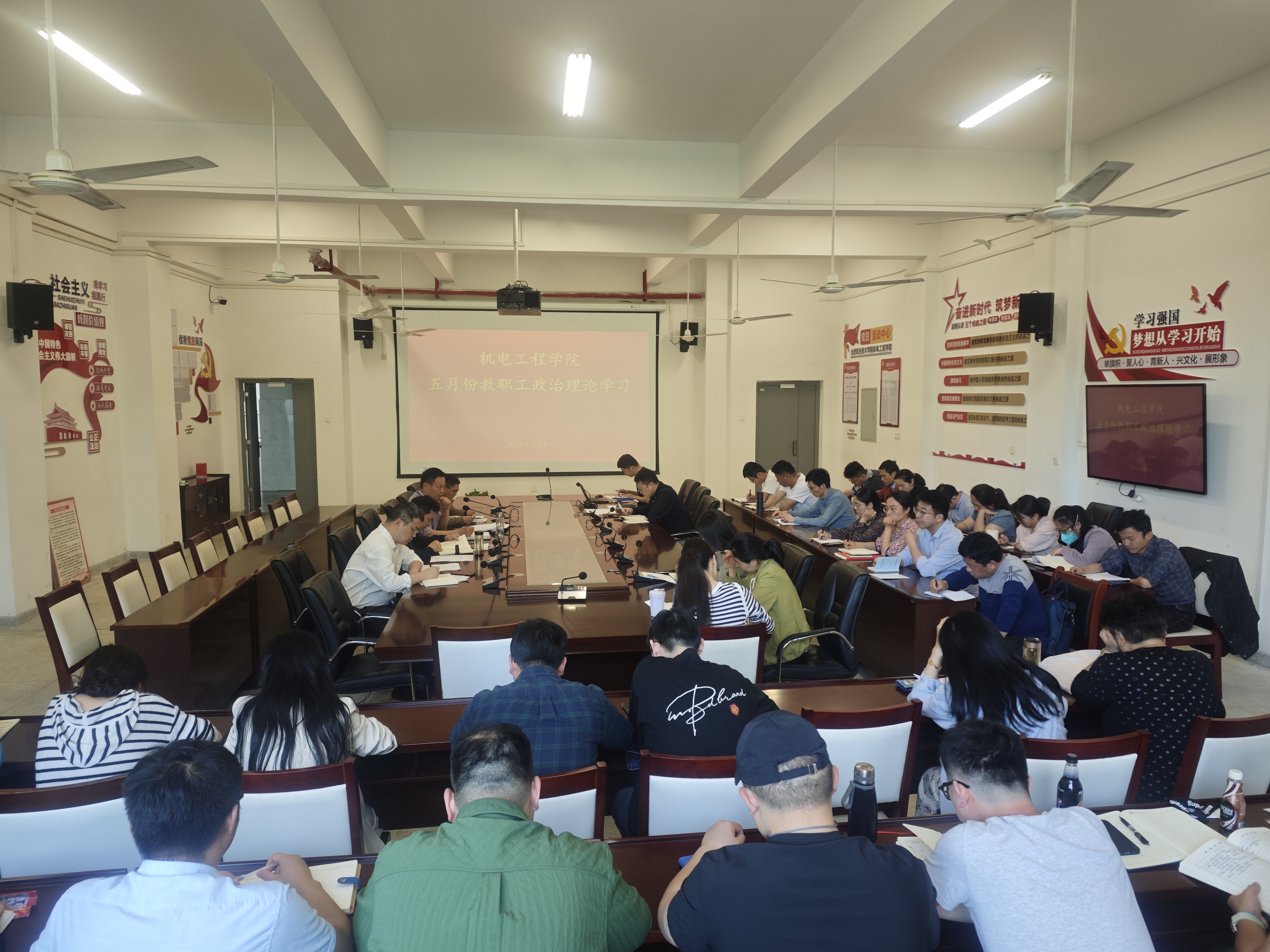 5月8日中午,机电工程学院在机电楼二楼会议室组织召开五月份教职工政治理论学习暨党纪学习教育启动会,学院全体教职工参加,会议由该院党总支副书记(主持工作)丁迎春主持。